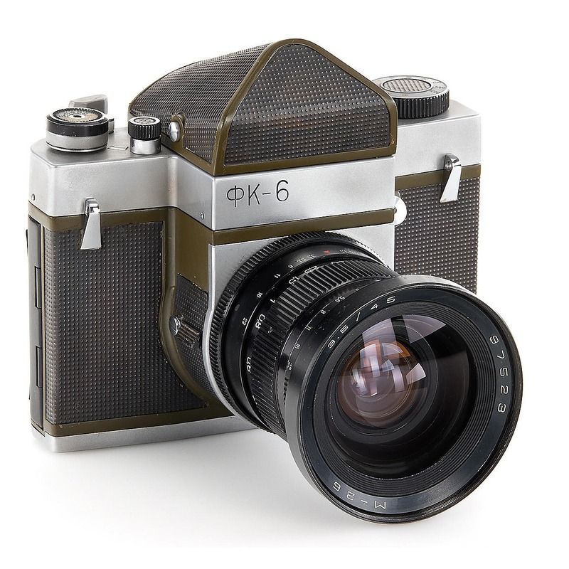 The Kiev FK-6 (ФК-6) is a basic 35mm film camera produced by the Arsenal factory in Kiev, Ukraine, during the Soviet era. Like many Soviet cameras of its type, it represents a functional and economical approach to photography, likely aimed at the domestic market or entry-level photographers. While specific details about its features, design, or production period are unavailable without further research, its designation as an FK-6 suggests it follows the conventional Soviet practice of using alphabetic codes for product lines. Characteristically, it probably offers a straightforward manual operation, focusing on core photographic functions without advanced features or significant ergonomic refinements.
