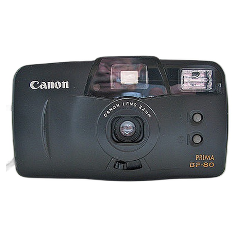 The Canon Snappy QT (Prima BF 80) Date is a compact 35mm point-and-shoot camera launched in 1997, representing Canon's entry into the highly competitive snapshot market of that era. Characterized by its simple, functional design aimed at casual photographers, it offered basic automation like autofocus, autoexposure, and a built-in flash, alongside its key feature: imprinting the date directly onto the photograph. Constructed primarily from plastic, it prioritized affordability and ease of use over sophistication or ruggedness, making it a straightforward tool for capturing everyday moments without technical complexity.