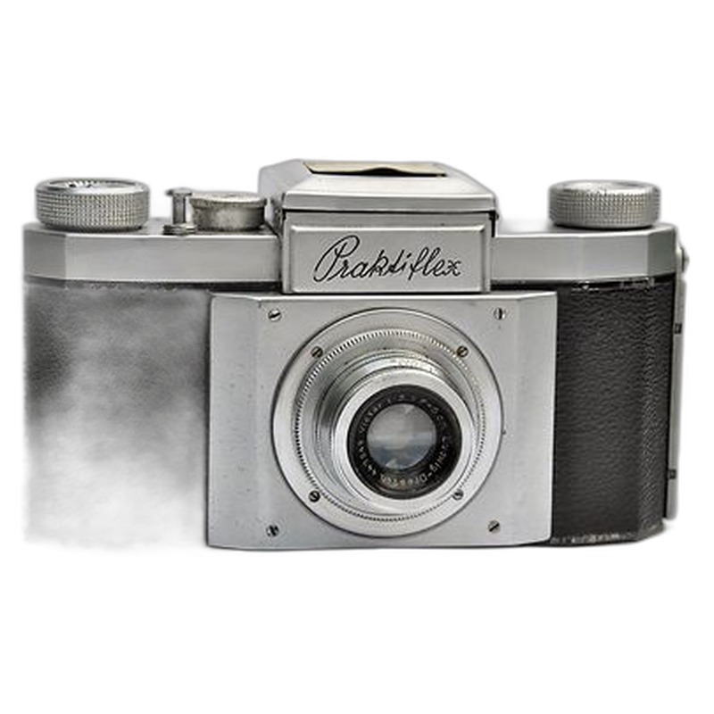 In design and functionality, the Praktiflex showcased German engineering pragmatism with its simple yet effective mechanics. The camera featured a metal body construction with basic controls for shutter speed and aperture adjustment, relying on a cloth focal plane shutter rather than more sophisticated mechanisms found in higher-end models. While not groundbreaking in its specifications, the v3 version improved upon earlier iterations with refined ergonomics and increased reliability. During the challenging years of World War II and its aftermath, the Praktiflex continued production in various forms, serving photographers who needed versatile equipment during a period when European photographic manufacturing was severely disrupted. This persistence through difficult cemented the Praktiflex's place as an important workhorse camera that helped establish the SLR format as a viable alternative to rangefinders during a pivotal era in photographic history.