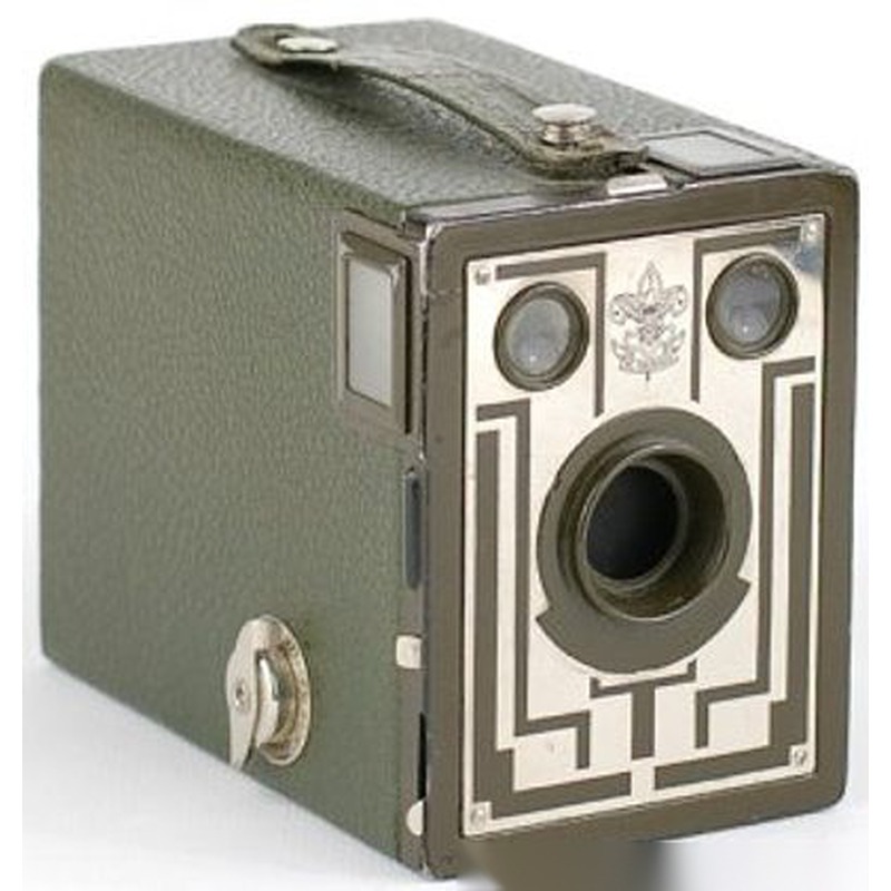 The Six-20 Boy Scout Brownie was a simple, fixed-focus box camera produced by Kodak for just two years, 1933 and 1934. Designed as an entry-level 35mm camera for a younger audience, including Boy Scouts, it offered basic snapshot photography at an affordable price point. Characterized by its minimalist construction and straightforward operation, it featured a simple meniscus lens and a rotary shutter with only a few speed settings, primarily aimed at capturing casual outdoor scenes and troop activities. While representative of Kodak's strategy to popularize photography across different demographics, it was a utilitarian device without significant technical innovation or design distinction compared to contemporary Kodak models.