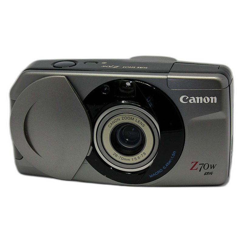 The Canon Sure Shot Z70W (Prima Super 28N), introduced in 1999, was a 35mm compact point-and-shoot camera designed for everyday photography. Targeted at the mass market, it offered a straightforward shooting experience with a fixed, 28mm lens and a simple autofocus system, typical of its era. Characterized by its lightweight plastic body and accessible controls, it prioritized ease of use and affordability over advanced features or exceptional build quality. Available in gold and silver finishes, it served as a practical tool for capturing casual snapshots and vacations without requiring technical expertise.