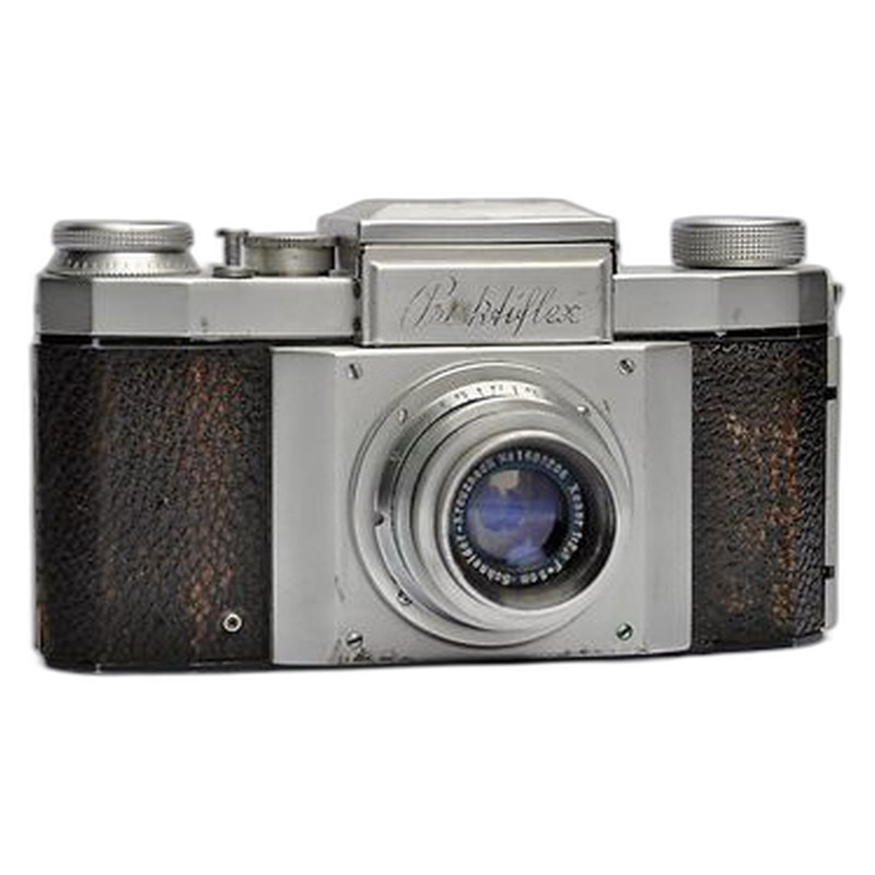 The Praktiflex (1939, v4) represents a significant early step in the popularization of the single-lens reflex (SLR) camera format by Dresden-based Kamera-Werke Guthe & Thorsch, later known as Praktica. As the fourth iteration of the Praktiflex model launched in 1936, it refined the basic mechanical SLR design pioneered by others, offering photographers a practical through-the-lens viewing experience coupled with interchangeable lenses. Its robust, all-metal construction, featuring a focal-plane shutter and a reflex mirror that flipped up to expose the film, was a durable solution for the era, making 35mm SLR photography more accessible to serious amateurs and professionals beyond niche offerings like the Contax I or early Leicas. While not reaching the iconic status of later SLRs like the Nikon F, the Praktiflex series laid crucial groundwork for the SLR boom, establishing Praktica as a major player in the affordable market segment before and after World War II.
