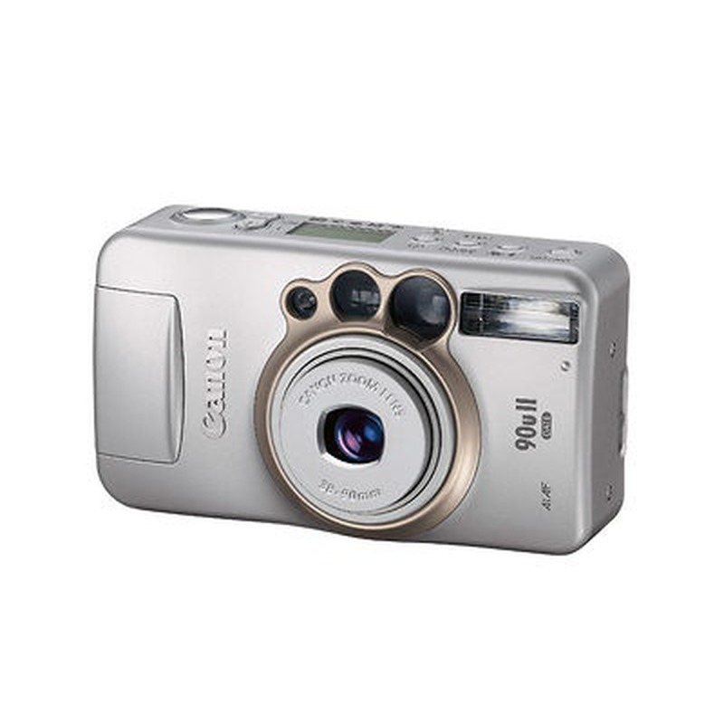 The Canon Sure Shot 90u II (Prima Zoom 90u II Date) is a compact 35mm point-and-shoot camera introduced in 2005, representing a late entry in the film era. It embodies the quintessential consumer camera of its time: lightweight, fully automatic, and designed for straightforward snapshot photography. Featuring a built-in zoom lens (likely around 38-90mm), it offered basic functionality like autofocus, autoexposure, and automatic flash, along with a simple date printing feature as indicated by its name. Its design prioritized ease of use and portability over advanced features or manual controls, targeting casual photographers seeking reliable, no-fuss image capture in the final years of mainstream film cameras before the digital surge fully dominated the market. It lacks distinctive design elements or technological innovations that set it apart from the numerous similar compact auto-focus zoom cameras produced by Canon and competitors during the early 2000s.