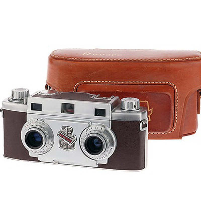 The Stereo 33 is a straightforward 35mm stereo camera introduced by Revere in 1953. Designed as an affordable entry point into 3D photography, it utilized the standard 135 film cartridge. Its construction and features were typical of mid-century budget cameras: a simple viewfinder, fixed-focus lens system, and basic shutter speeds likely limited to a few options. It offered a practical, albeit rudimentary, way for consumers to capture paired images for viewing through a stereoscope, representing a niche but accessible application of 35mm technology at the time.