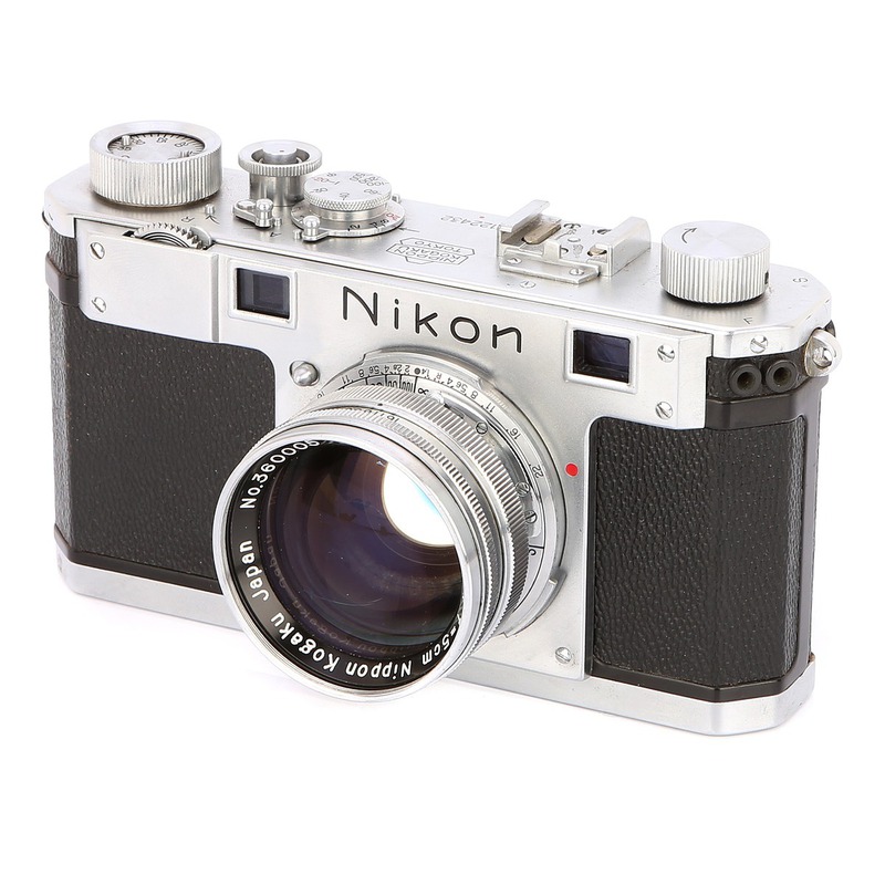 The Nikon S is a rangefinder camera introduced by Nikon in 1950, representing a significant step forward from the company's inaugural Nikon I model. It retained the basic 35mm rangefinder format but incorporated notable improvements, including a coupled rangefinder for improved focusing accuracy and a redesigned shutter mechanism offering speeds up to 1/500 second. Built with a robust die-cast alloy body and featuring a standard Nikon lens mount, it was designed as a reliable and relatively affordable tool for discerning photographers and enthusiasts, solidifying Nikon's position in the competitive post-war camera market. Its production ran until 1954, bridging the gap between Nikon's earliest experiments and the more advanced S2 model that followed.