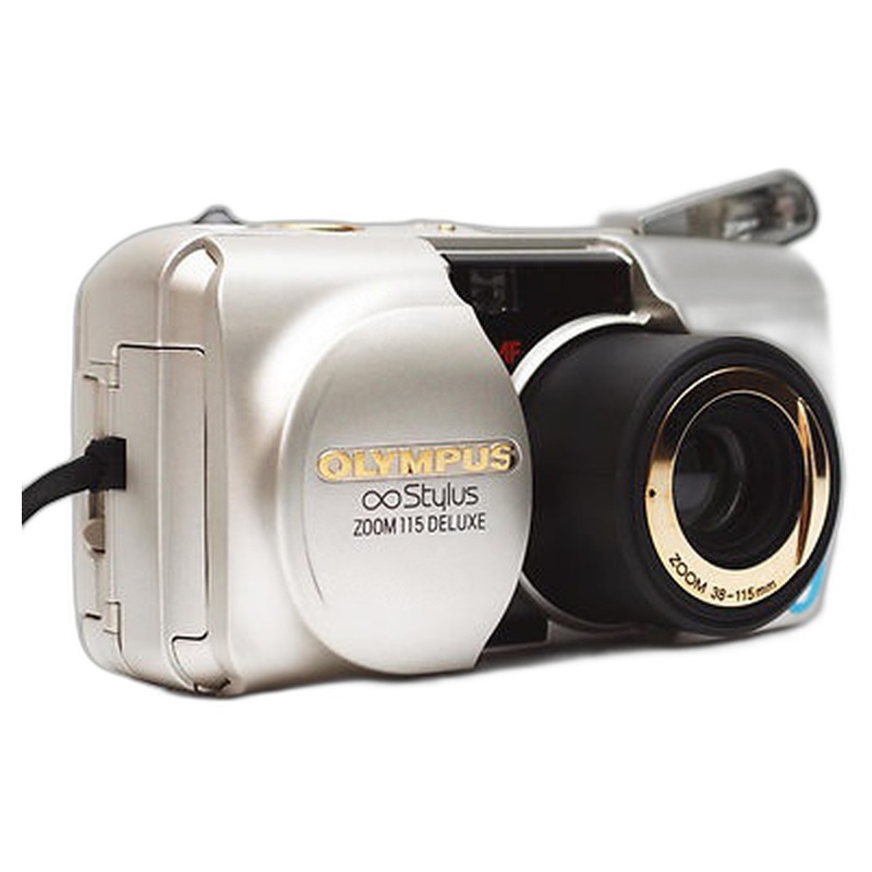 The Olympus Mju Zoom 115 Deluxe (marketed as the Infinity Stylus Zoom 115 DLX in North America) represents a typical mid-1990s compact zoom point-and-shoot film camera, designed for the mass consumer market seeking convenience and portability. Part of Olympus's successful and enduring Mju (Stylus) series, it featured a user-friendly design centered around a 38-115mm zoom lens, autofocus, and a built-in flash, catering to snapshots and casual photography. Its compact size and automatic operation made it accessible to a broad audience, embodying the era's trend towards easy-to-use, pocketable cameras for everyday use without requiring technical expertise.