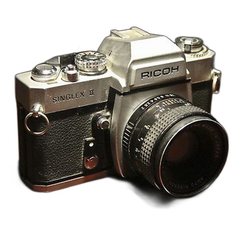 The Ricoh Singlex II appears to be a basic 35mm single-lens reflex (SLR) camera, likely manufactured during the late 1960s or early 1970s, representing Ricoh's entry into the increasingly competitive consumer SLR market. As a follow-up model to the original Singlex, it was designed to offer an affordable, user-friendly option for photographers seeking interchangeable lens capabilities without the premium cost of established brands. Its design focused on practical functionality with straightforward controls, a central matte-focusing screen, and a modestly specified shutter and light meter system, embodying the era's shift towards mass-market SLRs that democratized advanced photography features. While not revolutionary, the Singlex II exemplified Ricoh's strategy of providing functional, budget-conscious cameras to a broad audience.
