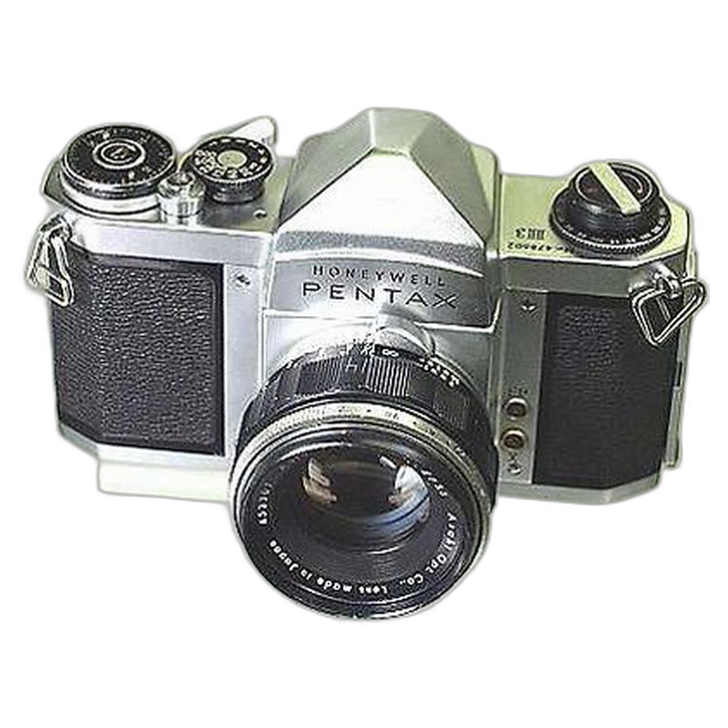 The Honeywell Pentax H3 is a 35mm single-lens reflex (SLR) camera introduced by Pentax in 1959, marketed internationally through Honeywell. As the third model in Pentax's iconic H series, it refined the innovations of its predecessors with a pentaprism viewfinder, enabling eye-level framing and true-to-life image composition—a critical advancement for SLR usability. The camera featured a robust, all-metal construction with a focal-plane shutter offering speeds from 1 to 1/1000 second, and it supported a growing ecosystem of interchangeable lenses, including the popular Takumar series. Its reliable mechanics and intuitive design made it a trusted tool for amateur enthusiasts and photojournalists during the transition from rangefinder to SLR dominance, cementing Pentax's reputation for accessible precision.