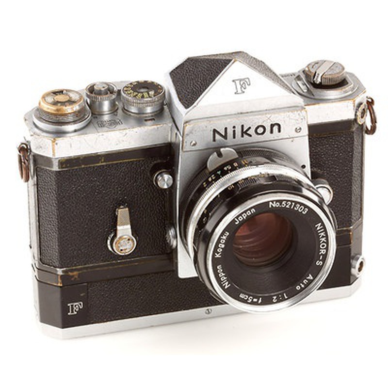 The Nikon F, introduced in 1959, stands as one of the most revolutionary cameras in photographic history. As Nikon's first single-lens reflex (SLR) camera for the 35mm format, it immediately established a new standard for professional photography. The camera's modular design was groundbreaking, allowing photographers to interchange viewfinders, focusing screens, and motor drives to suit specific shooting needs. This flexibility, combined with exceptional build quality, made the Nikon F the tool of choice for photojournalists and professional photographers worldwide during a period of rapid change in both technology and society. The camera's robust construction earned it a reputation for durability, able to withstand extreme conditions in the hands of photographers covering conflicts and other demanding assignments around the globe.