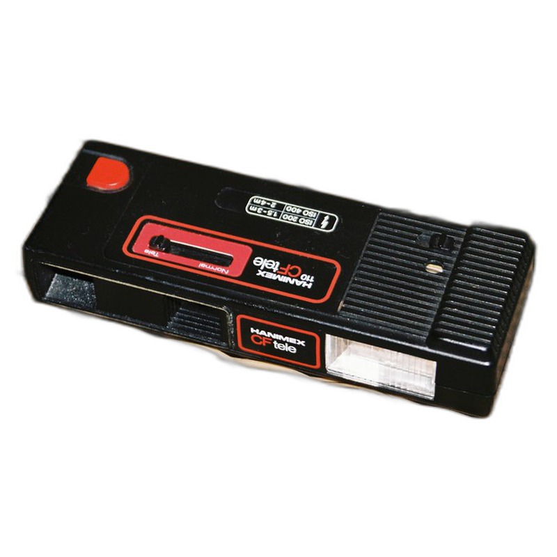 The Hanimex CF Tele is a basic 110 cartridge camera introduced by Hanimex in 1985. As a product of the 110 format era, it likely featured a fixed-focus lens, simple shutter speeds, and a basic viewfinder, designed for point-and-shoot photography at an accessible price point. Characterized by its compact size and plastic construction typical of consumer cameras of this period, it offered minimal features aimed at casual snapshooters rather than serious photographers or enthusiasts.