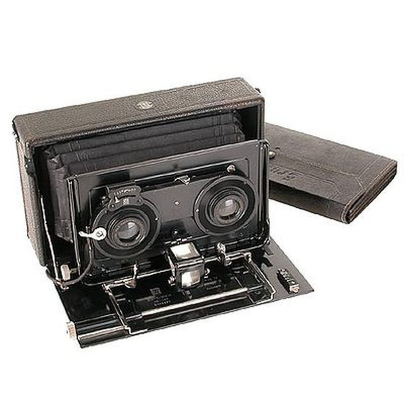 The HEAG IV Stereo is a classic example of Ernemann's focus on popular stereo photography. Produced in the early 20th century, likely before Ernemann's merger into Zeiss Ikon in 1926, it represents a consumer-grade approach to creating three-dimensional images. Like other models in the HEAG series, it features twin lenses paired with a single shutter mechanism to expose two slightly offset photographs simultaneously on a single plate or roll film frame. This design aimed to make the relatively complex process of stereo photography accessible to amateur photographers and hobbyists, capitalizing on the Victorian era's enduring fascination with 3D imagery. Its construction was likely straightforward and functional, prioritizing ease of use and affordability over advanced engineering or luxurious materials, reflecting its position as a mass-market stereo camera.