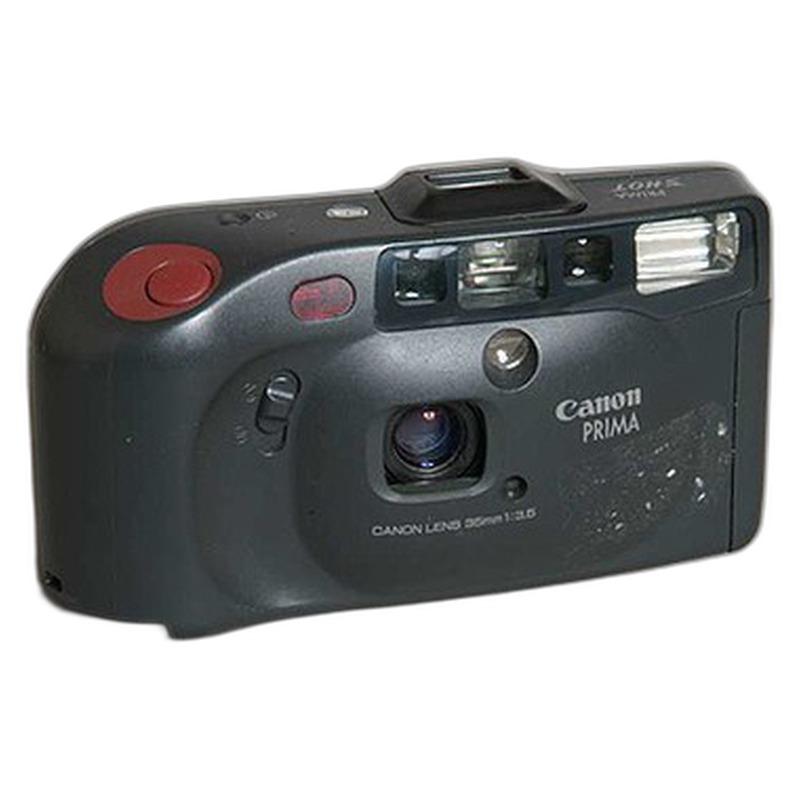 The Canon Sure Shot Ace, also marketed as the Prima Shot or Autoboy Prisma, is a compact 35mm fixed-lens autofocus camera introduced in 1988. Designed as a straightforward, user-friendly point-and-shoot, it targeted the mass consumer market seeking simplicity and reliability. Featuring a standard 35mm lens, autofocus, auto exposure, and a built-in flash, it represents Canon's effort to provide an accessible, fully automatic shooting experience without manual controls. Characterized by its plastic body and basic functionality, the Ace prioritized ease of use over sophistication, fitting Canon's extensive lineup of popular compact cameras during the film era.