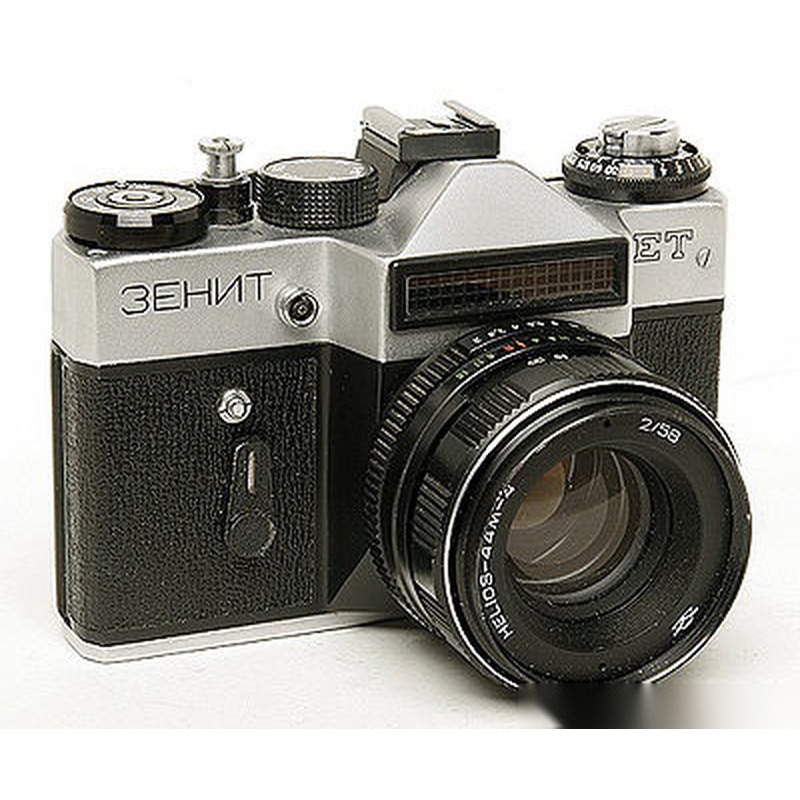 The Zenit ET is a 35mm single-lens reflex (SLR) camera manufactured by the Soviet KMZ (Krasnogorsky Mekhanichesky Zavod) plant, likely during the late 1970s to early 1980s. As part of the Zenit series, it was designed as an affordable, utilitarian camera for the mass market in the Soviet Union and Eastern Bloc countries. The camera features a simple mechanical shutter with speeds from 1/30 to 1/1000 second, a manually operated diaphragm, and a TTL metering system. Its robust construction and straightforward operation made it a popular choice among amateur photographers and students, despite lacking the advanced features and refined ergonomics of Western counterparts.