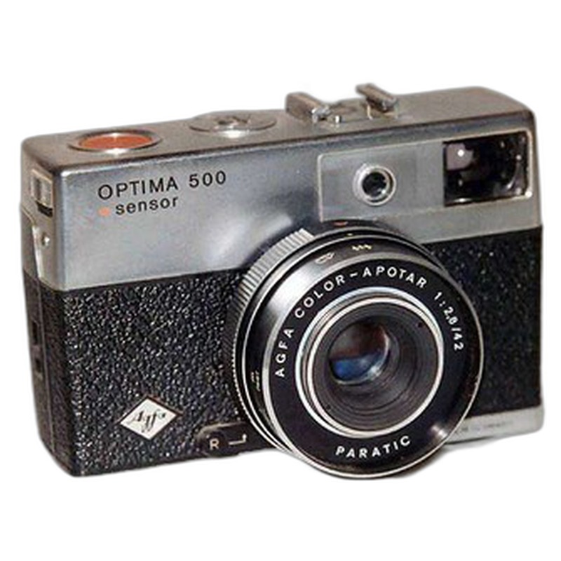 The Agfa Optima 500 Sensor represents a typical mid-20th-century compact camera from a major European manufacturer. Produced during the era when Agfa was a significant force in consumer photography, this camera likely features simple automation, such as a built-in selenium light meter coupled with a shutter speed selector or basic aperture control, common to the Optima series aimed at the amateur market. Its design would have prioritized ease of use and affordability, typical of Agfa's strategy to make photography accessible to the masses. Constructed primarily from materials like bakelite or early plastics, it offered a durable, functional solution for everyday snapshots without the complexity or cost of higher-end models. While not a groundbreaking design itself, it embodies the practical, user-focused ethos of Agfa during the post-war boom in casual photography.