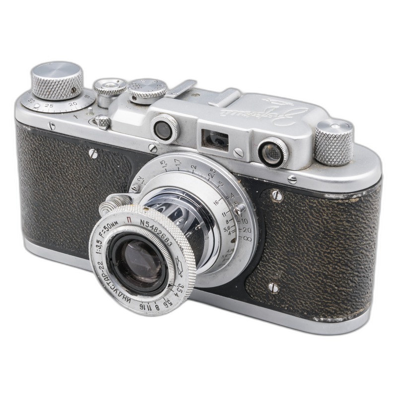 The Zorki 1 holds a significant place as one of the first Soviet Leica-inspired 35mm rangefinder cameras to emerge following World War II. Produced in Krasnogorsk near Moscow by KMZ (Krasnogorsky Mekhanichesky Zavod), it represented a crucial early effort by the USSR to establish domestic production of high-quality miniature cameras, moving beyond simple imitations towards developing indigenous capabilities. Its design was heavily based on the pre-war Leica II (Model D), featuring a coupled rangefinder integrated into the viewfinder, a horizontal cloth focal-plane shutter, and a threaded M39 lens mount, directly mirroring Leica's influential architecture. This foundation established the Zorki series and the later, more successful Fed series, becoming workhorses for Soviet photographers and enthusiasts during the late 1940s and 1950s.
