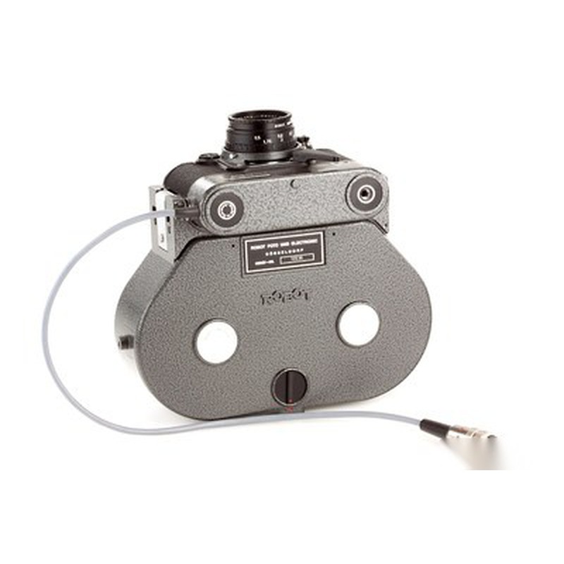 The Robot Motor Recorder 36CS represents a specialized variant from the Robot camera line, a German manufacturer known for producing innovative motor-driven 35mm cameras. While sharing the iconic Robot name, this model appears to have been designed specifically for applications requiring sequential image capture, as indicated by its "Recorder" designation. The motor drive system would have enabled rapid consecutive shooting, positioning it for professional or industrial use where continuous photography was essential. Its name suggests potential 36-exposure capability, utilizing standard 35mm film cassettes common in the mid-20th century. Like other Robot cameras, this model would have featured robust metal construction and precision mechanics characteristic of German engineering of the period, prioritizing functionality over aesthetic design.