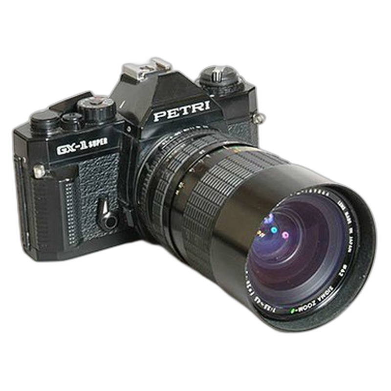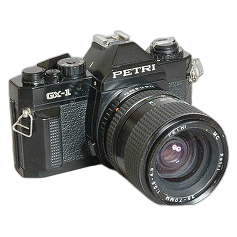 The Petri GX-1 was a budget-oriented 35mm camera introduced by Petri Camera in 1980, a period dominated by the rise of Japanese SLR giants. Positioned as an affordable entry point for photography enthusiasts, it featured a straightforward, functional design typical of contemporary consumer models. Constructed primarily of plastic with basic metal components, it offered essential manual controls for shutter speed and aperture, alongside a modest built-in light meter, aiming for reliable and accessible picture-taking without the complexity or cost of higher-end SLRs. While serviceable for everyday use, it lacked the technological innovation, robust build, or brand prestige associated with more historically significant cameras of the era, reflecting Petri's niche in the competitive mass market.