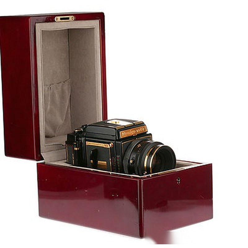 The Mamiya RB-67 Pro SD Gold represents the pinnacle of Mamiya's iconic medium format SLR system, celebrated for its modular design and exceptional image quality. Introduced as a limited edition variant of the RB-67 Pro S, it features a distinctive gold-plated body and engraved accents, transforming the professional workhorse into a coveted collector's piece. The system itself, launched in the late 1960s, revolutionized studio photography with its rotating back (allowing instant shift between horizontal and vertical orientation) and leaf shutter lenses enabling flash sync at all speeds. Renowned for its robust construction and 6x7 cm negatives delivering unparalleled detail, it became a tool of choice for advertising and portrait photographers, including industry legends like Helmut Newton. The Pro SD Gold retains all functional innovations—interchangeable finders, backs, and optics—while elevating the RB-67's legacy through its opulent finish.