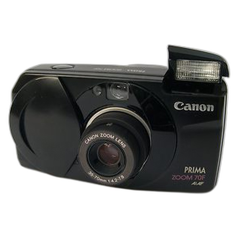 The Sure Shot 70 Zoom is a compact 35mm point-and-shoot camera introduced by Canon in 1995, also marketed as the Prima Zoom 70F in some regions and Autoboy Luna 35 in others. As a mid-range consumer camera, it features a zoom lens system, autofocus capability, and automatic exposure control, designed for casual photographers seeking convenience in a portable format. Its straightforward design with minimal manual controls typifies the point-and-shoot category that dominated amateur photography during the mid-1990s film era.